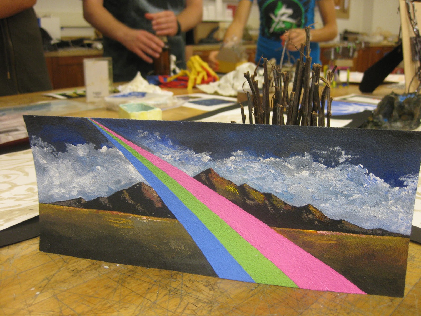 For instance, a sidewalk with splattered paint, a concrete wall with paint chipped away.